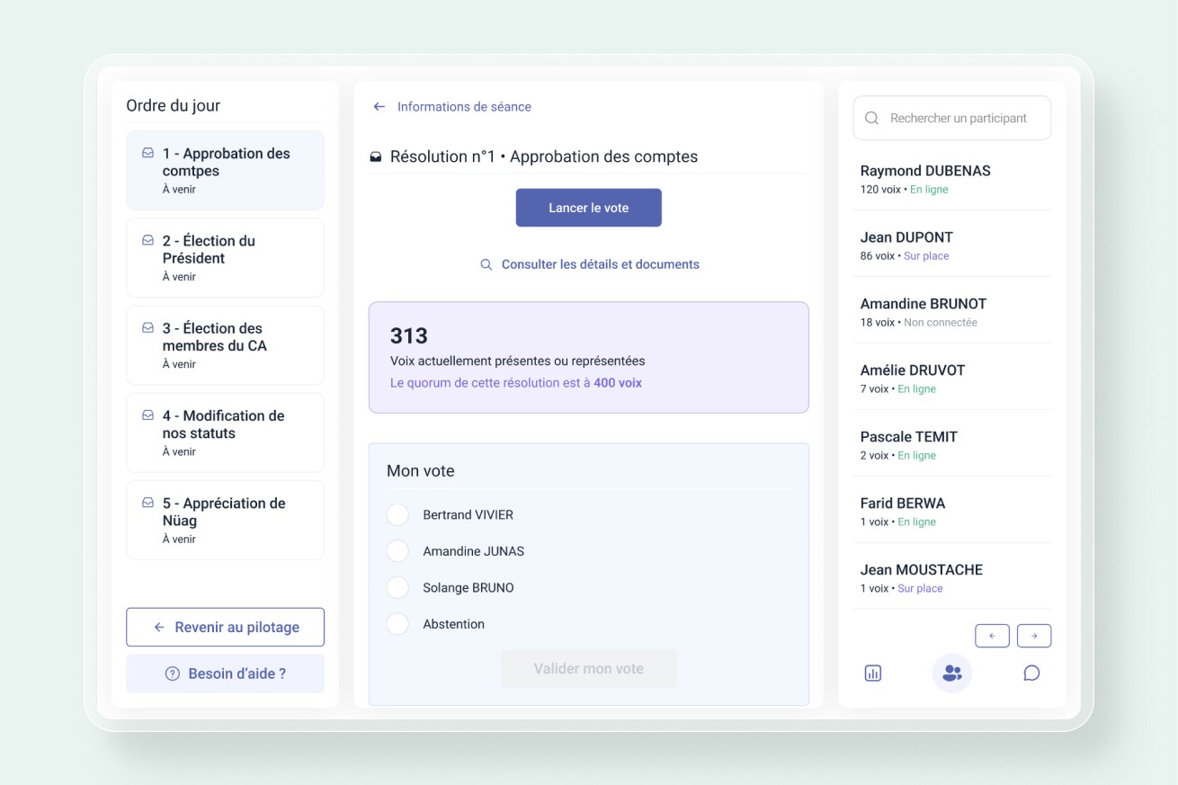 One of the main objectives of an organizer is to reach their quorum. A guided and straightforward voting experience increases voter participation and makes it easier to achieve this objective.